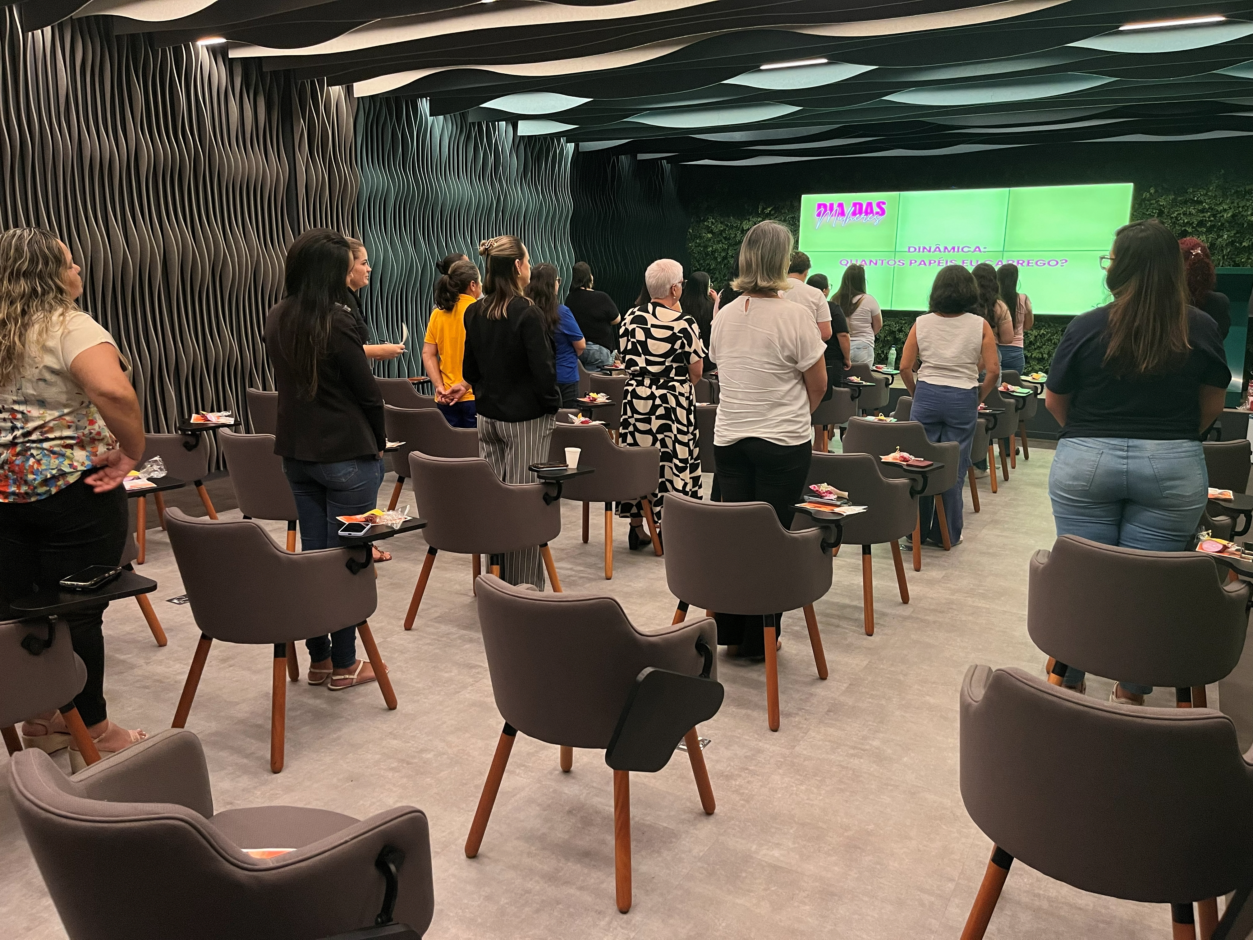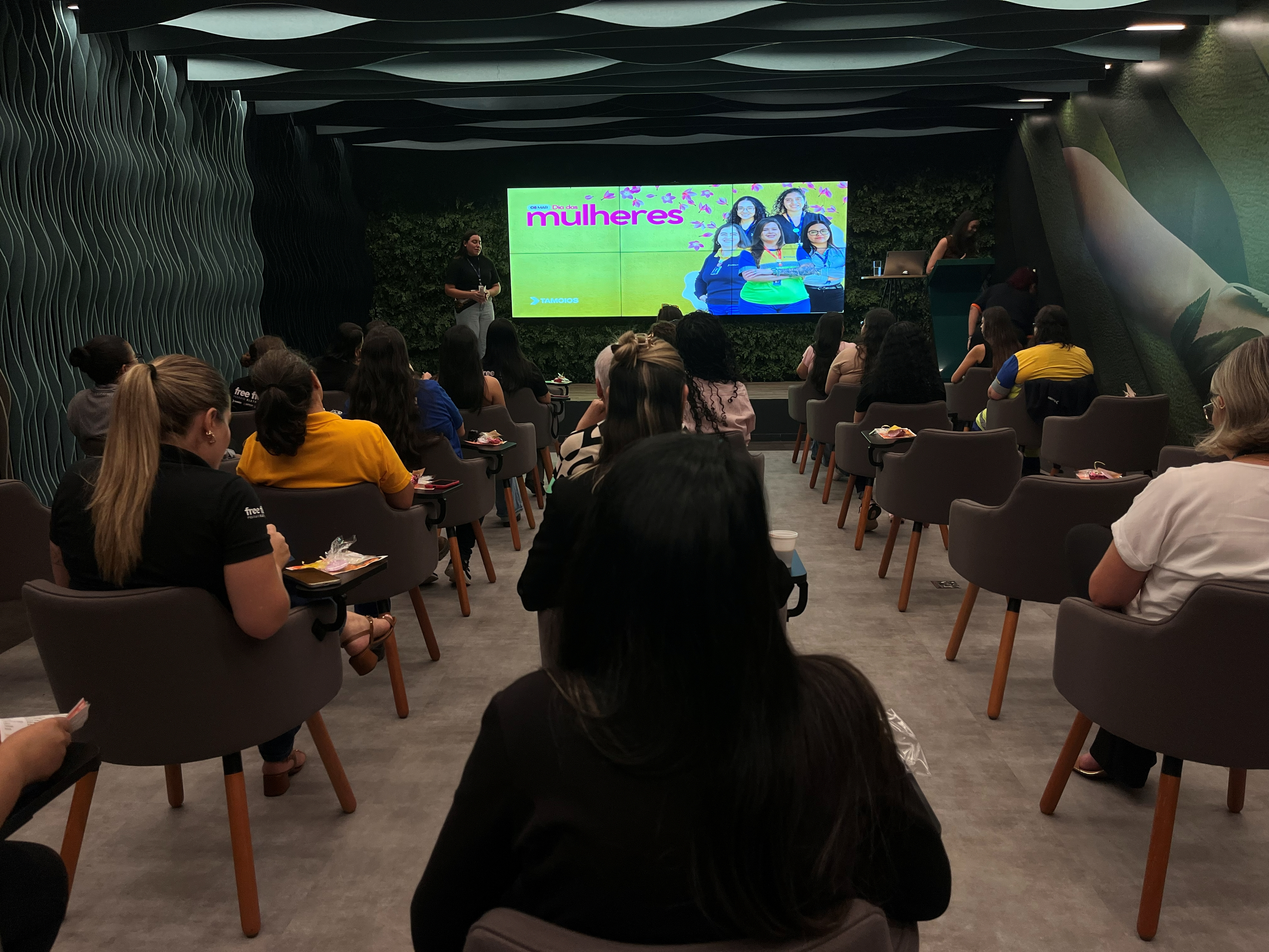 No primeiro dia, foi realizada uma palestra com a psicanalista e terapeuta sistêmica Larissa Lopes, que trouxe o contexto histórico e social do Dia da Mulher convidando-as a refletir sobre a importância de olhar para si com mais gentileza.