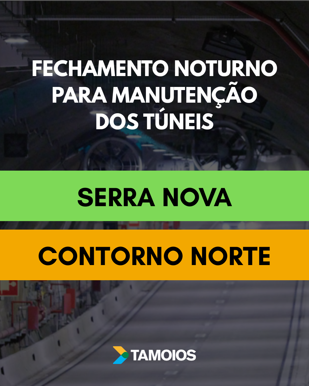 Nessa semana, os fechamentos noturnos de manutenção dos túneis vão acontecer na Serra Nova e no Contorno Norte. As atividades vão ocorrer das 22h às 6h do dia seguinte, conforme programação abaixo: