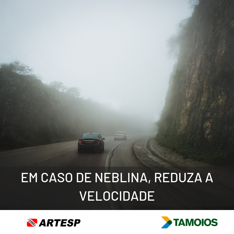 Com o objetivo de reforçar os alertas e as informações de segurança, a Concessionária Tamoios orienta mais uma vez que, em caso de neblina ou fumaça na pista, o usuário deve: