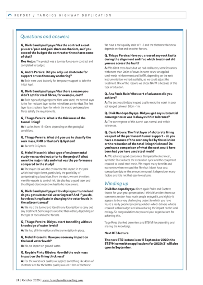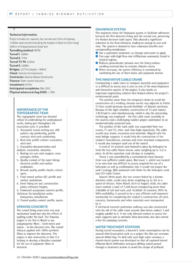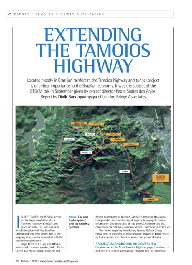 O material produzido pela revista foi um desdobramento da palestra realizada no dia 03 de setembro (http://www.concessionariatamoios.com.br/noticias/show/1076/obra-de-duplicacao-da-tamoios-e-apresentada-em-evento-internacional), durante o evento virtual da British Tunnelling Society (BTS).