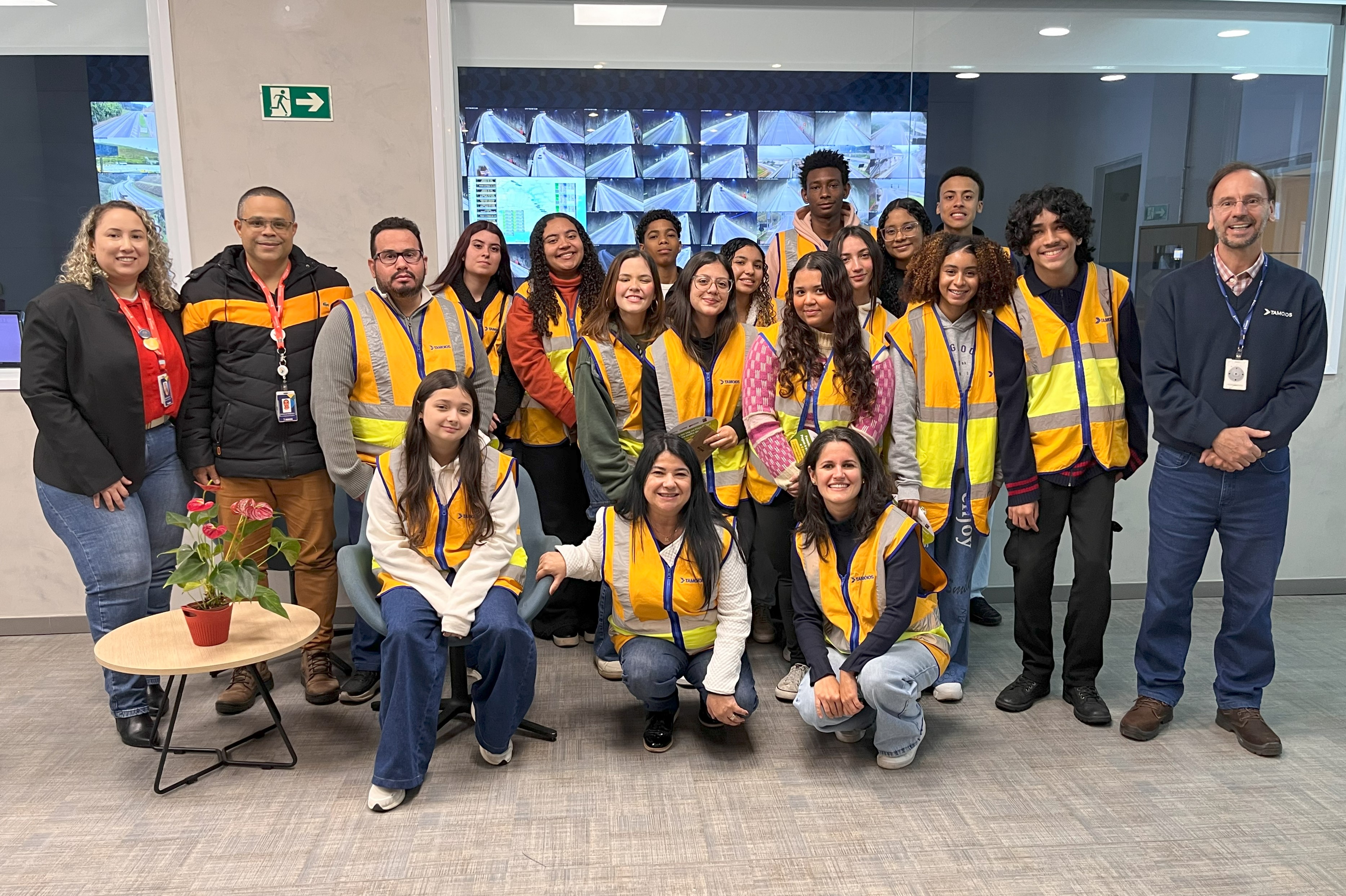 Durante a visita, houve apresentação e bate papo com profissionais da Tamoios. A engenheira Débora Rodrigues e o técnico em Segurança do Trabalho Rodrigo Mendonça compartilharam suas experiências e atividades profissionais. O grupo também esteve no Centro de Controle Operacional e no túnel de segurança do km 65. Os alunos estiveram acompanhados de Mari Machado e Pedro Corat.