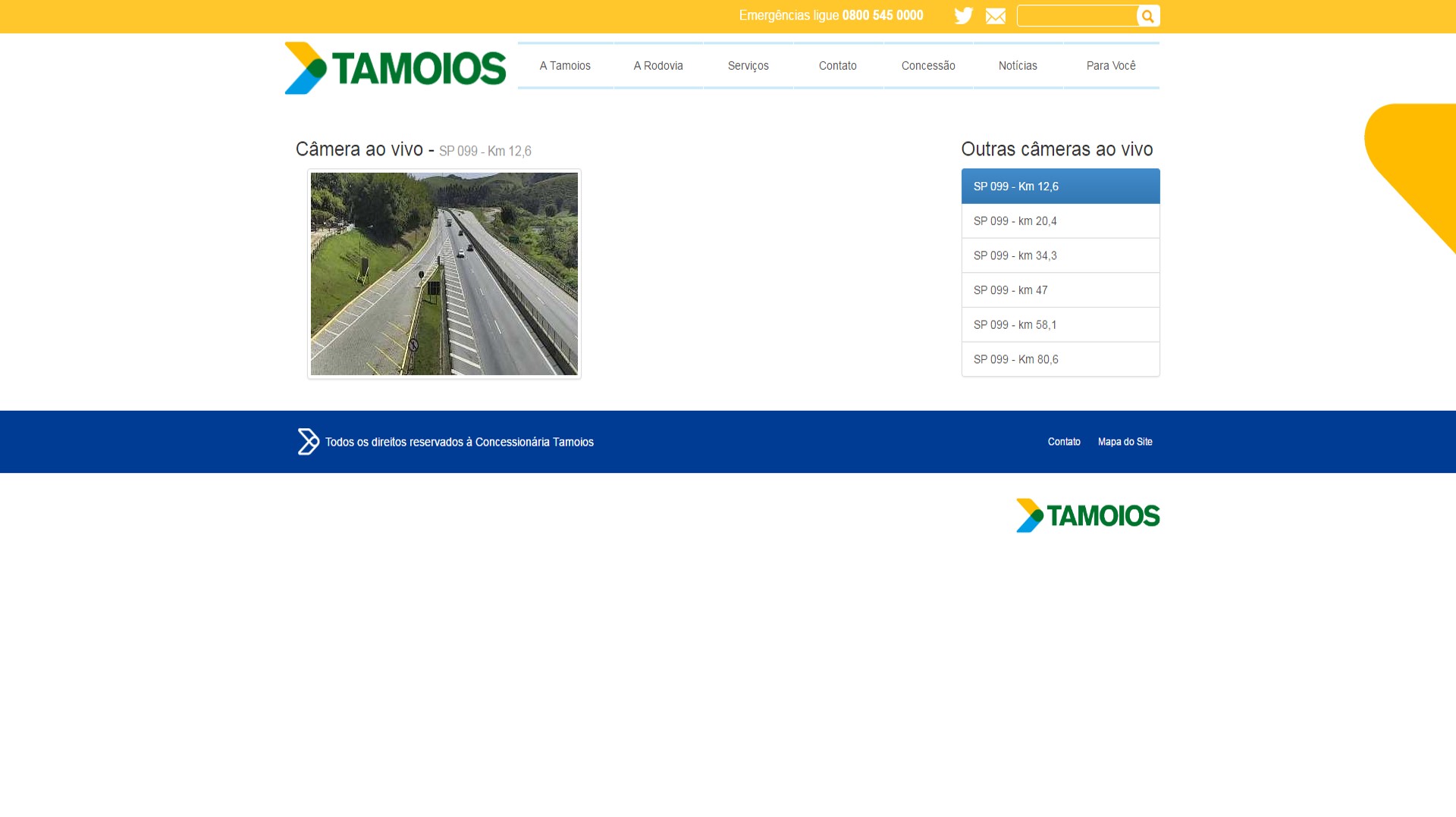 A Concessionária Tamoios passou a disponibilizar imagens ao vivo da Rodovia dos Tamoios em seu site. O serviço visa beneficiar os usuários, que poderão consultar as condições de tráfego e de condições climáticas em tempo real para planejar suas viagens em direção ao Litoral ou para o Vale do Paraíba.