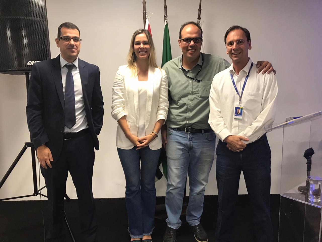 Na imagem Robinson Avila - Gerente de Engenharia da Tamoios, Dra. Fernanda Abra - Bióloga e mestre em ecologia pelo Instituto de Biociências da Universidade de São Paulo (IB/USP, Rodrigo Passos - Gerente de Avaliação da CETESB, Marcos Elia - Assessor de Comunicação da Tamoios.